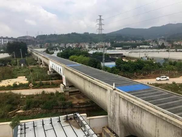 輸水線(xiàn)路工程11個(gè)標段于2010年上半年全面開(kāi)工,2013年12月8日,隧洞混凝土澆筑全部完成,倒虹吸壓力鋼管安裝、渡槽混凝土澆筑施工全部完成,具備通水條件。