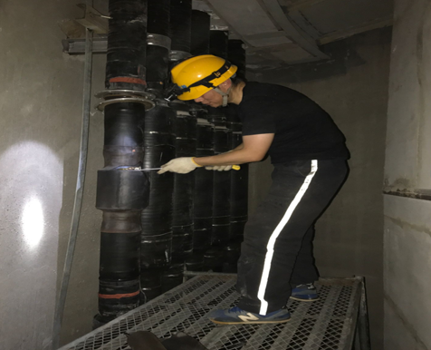 為及時(shí)消除安全隱患,泵站檢修人員于2017年5月27日對泵站#1—#4泵組的管母線(xiàn)老化、破損層進(jìn)行全面更換。檢修期間,管母線(xiàn)廠(chǎng)家委派了相關(guān)技術(shù)人員到現場(chǎng)技術(shù)支持,保證檢修工作安全、高效開(kāi)展。整個(gè)檢修過(guò)程中,檢修人員在空氣循環(huán)不暢的狹窄空間里頂著(zhù)高溫,悉心嚴謹的工作著(zhù),用奮勇拼搏、不畏艱難、齊心協(xié)力的工作態(tài)度和工作熱情為泵組安全奉獻著(zhù)自己的汗水和力量。