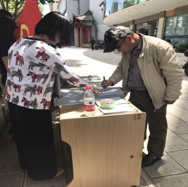 上圖為分發(fā)宣傳資料現場(chǎng)